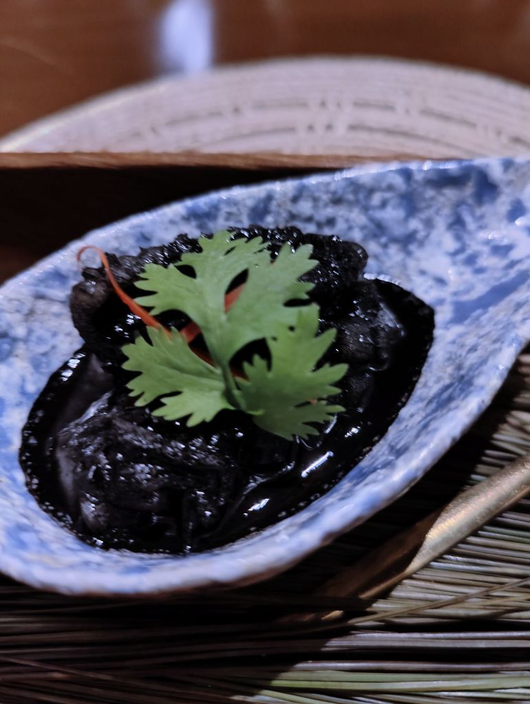 First, is the really good Plum Wine that I had while waiting for my friend to arrive, stuck in traffic for some time. I had the mistake to ask Chef Black who hovered around like a skilled party host if it was good. It’s his wine. So, the discussion was over right away. But it was really good, topped with soda and an ice ball. It was so good that my friend and I ended up buying a bottle each to take home. Like this.