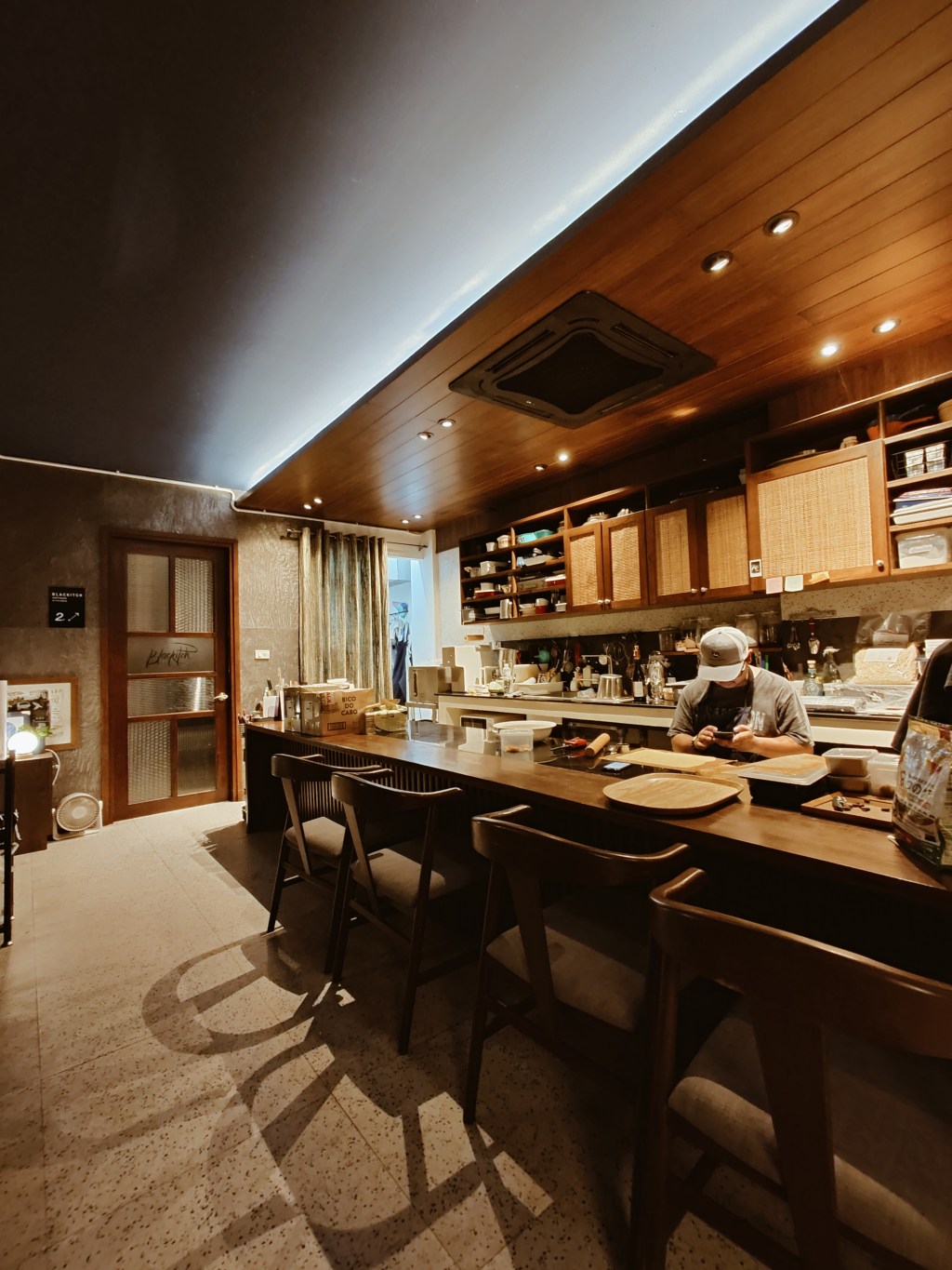 It’s a restaurant purely by reservation. When I visited, it had five tables in a 4-2-2-4-4 configuration, which I think can be rearranged depending on the reservation. The exterior portrays a modern-chic wood style, and the bar and dining area are designed so that as soon as you enter, you know that the kitchen is serious about its food.