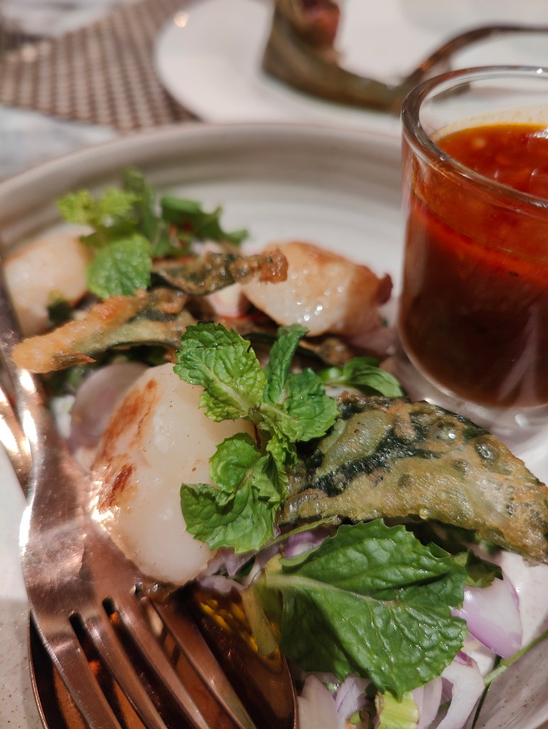 True, the greenery outside, complete with an open “breathing space” with large trees is a sight to behold, especially in an an urban city as Bangkok. The glass walls that gives you view from the inside dining hall of the calming visual treat outside (yes, dining inside is better especially during Bangkok’s super hot summers), the choice of chairs and dining tables, the muted yet bright enough lighting, all makes a wonderful experience. And the food, yes the food is the highlight of it all. A few pics below: