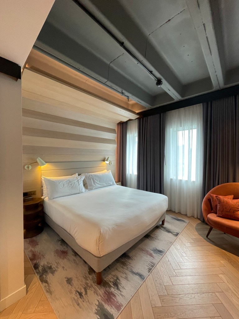 Third, the hotel’s design is modern, clean, and chic. I love the minimalist furniture and the overall room design that exudes elegance and good taste. My room has full windows on one side with black-out curtains and a good-sized toilet and bath. See pictures below: