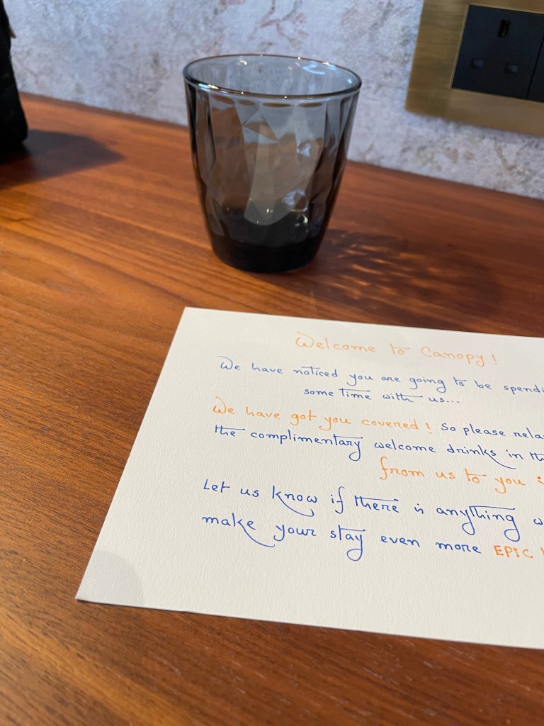 Finally, service is just very thoughtful. On my first day, after taking a walk to the nearby Tower of London, I received a note from the Front Desk thanking me for a long stay, plus complimentary mini-bar drinks (including my favourite organic Karma Cola—how good is that?).