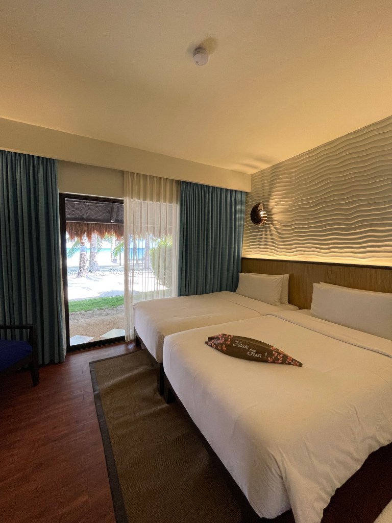 Although I had my heart set on the larger Premium Beachfront room (but it was too hard to book one during this high season), I was still very pleased with my choice. The De Luxe room was nicely appointed, spacious, and comfortable, making it an ideal sanctuary after a day in the sun.