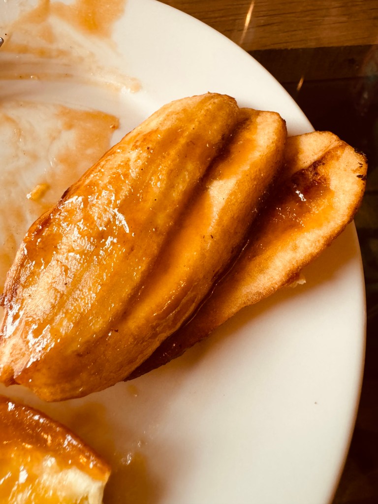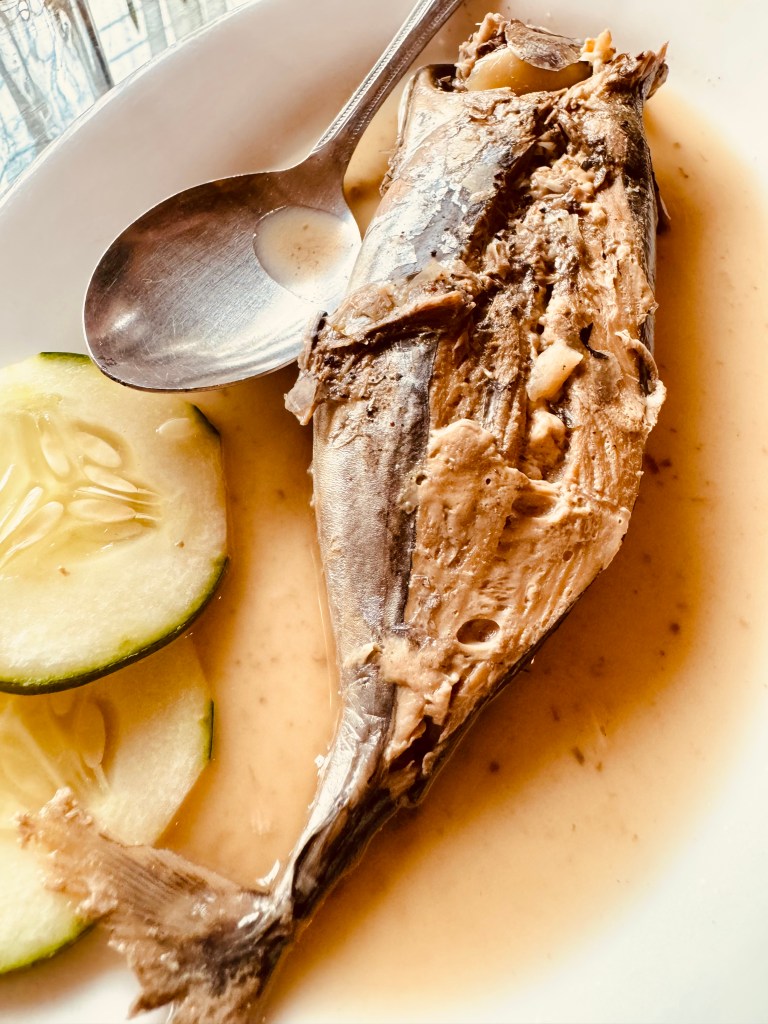I ordered my favorites: pork humba, pancit canton, and inun-onang tulingan. Each dish was bursting with flavor. The pork humba was tender and savory, with just the right amount of sweetness, while the pancit canton was expertly cooked, with a perfect balance of vegetables and noodles al dente. The inun-onang tulingan, a traditional dish of mackerel soaked in vinegar and abundantly covered with garlic, was fresh and flavorful, reminding me of the rich culinary heritage of the Philippines. I ordered a cup of iced Spanish latte to accompany the meal, and I couldn’t resist trying the pinaypay na saging for dessert. This delightful banana dessert was the perfect sweet ending.