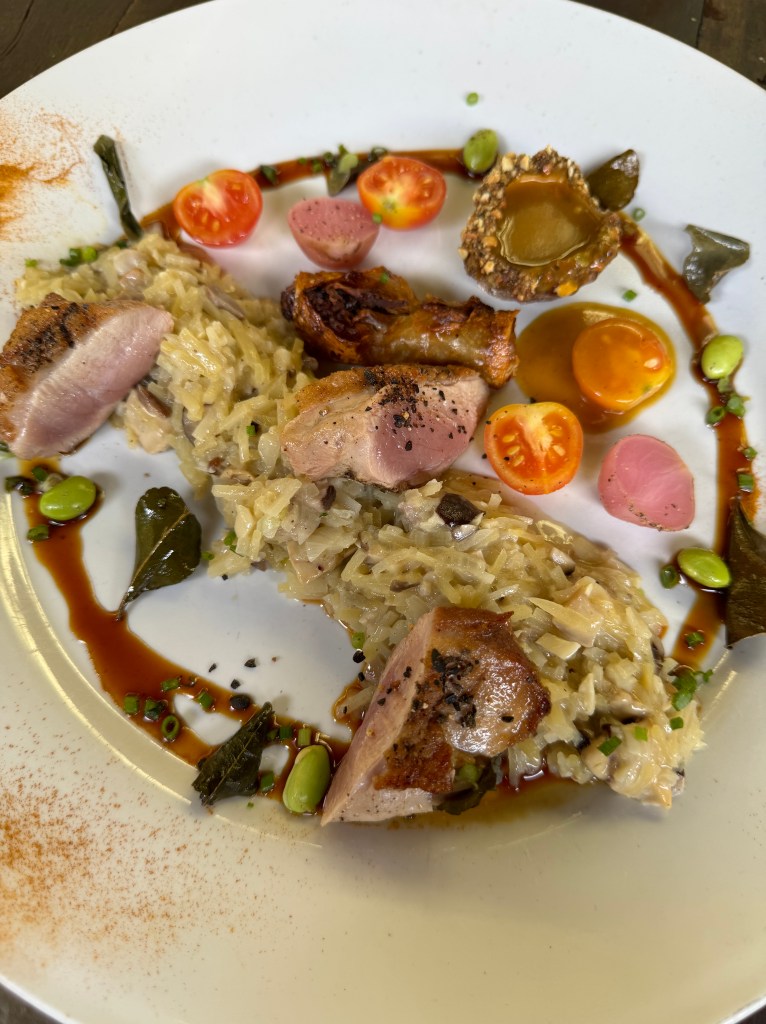 When the dish arrived, I took my first bite with some hesitation, but it was pure delight. The duck was tender, the passion fruit sauce adding a sweet yet tangy twist, while the risotto was creamy and rich, each bite a harmony of flavors. I found myself savoring every mouthful, wishing my wife were there to enjoy it with me. She loves meals like this—unexpected, memorable, and full of flavor.