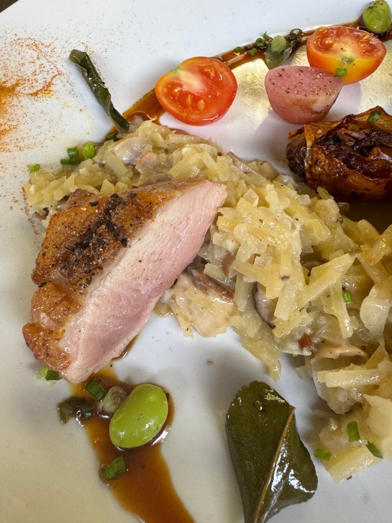 Feeling a bit more optimistic, I decided to take the waiter’s suggestion and ordered the Duck Passion. According to him, it was a favorite among regulars—grilled duck breast, cooked medium-rare, with a passion fruit sauce and a risotto made of potatoes and foie gras. It sounded indulgent, and I was curious.