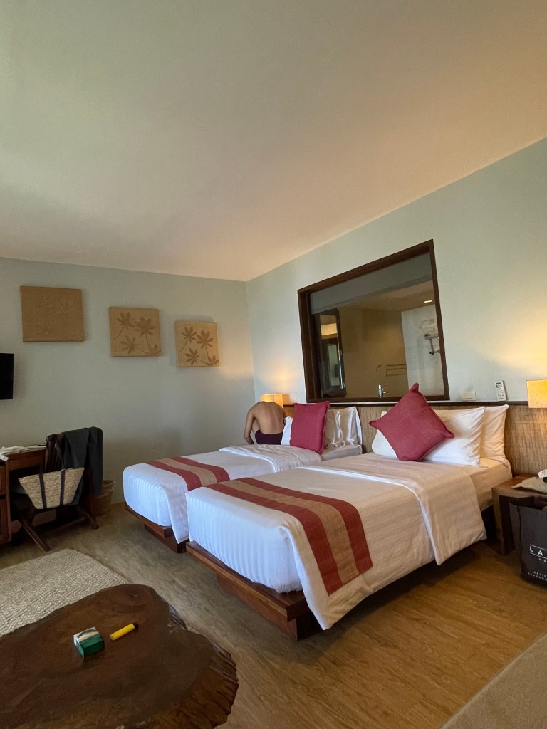 We got two rooms, and we were glad we did. We planned to switch spaces during our stay. For our first night, I bonded with my 16-year-old son in a twin bedroom while my wife spent the night with our 11-year old daughter in a cozy king-bed bedroom just beside ours. Alodia at the front office was very kind enough to heed my request for two rooms that sit close to each other, situated on the second floor with a very nice view of the pool, the sea, and the horizon.