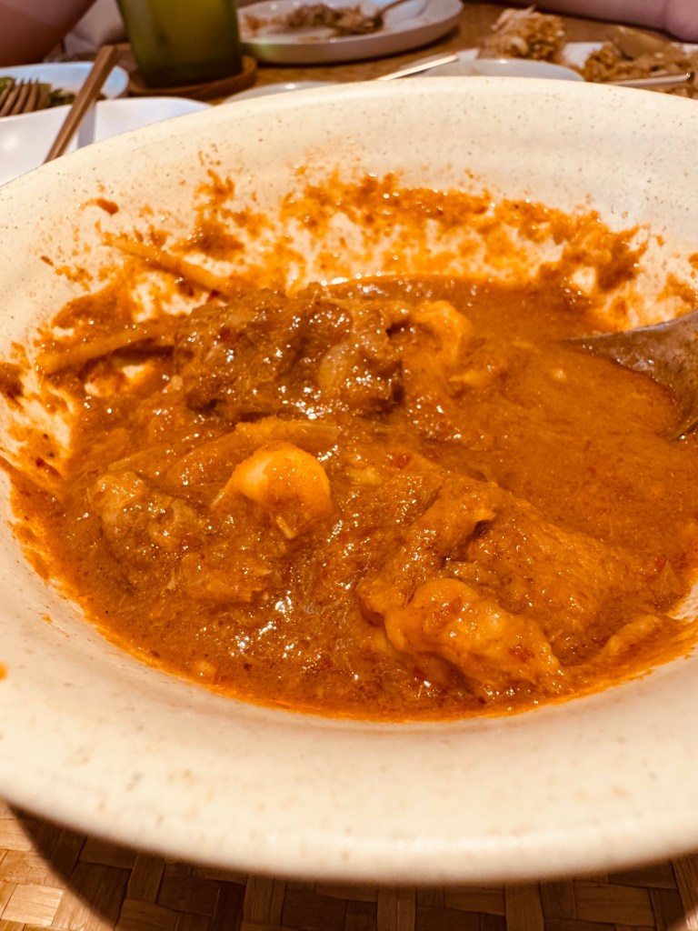 We started the meal with yum sum o, a pomelo salad with toasted coconut and fried shallots topped with deep-fried seasonal fish. From there, we ordered panang curry, fried rice, stir-fried vegetables, ang gaeng hang lay. All were delicious and reasonably priced, especially with the kind of service we got. Araksa is an advocate for slow food, so you should spend the time there with people you love to speak to as preparation time needs some good conversation.
