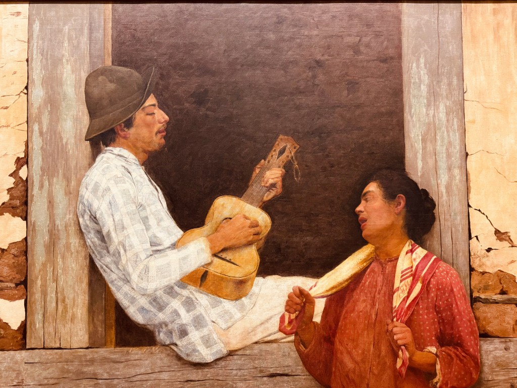 The Pinacoteca’s collection is impressive – it’s like looking at a whole generation of creativity – from paintings, sculptures, installations, fabrics, and films. I visited this place because I love the work of Almeida Júnior, a realist painter whose famous artwork – The Guitar Player enchants me. The gallery houses a significant volume of his work, including the one that I love (see first portrain below).