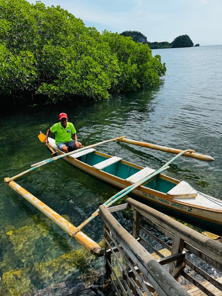 Often referred to as the cradle of civilization in Bohol, Lamanok Island is renowned for its deep cultural roots. Some of the caves in the island once served as ancient burial grounds, where you can still spot age-old boat coffins and earthenware jars. The caves are the island’s main highlights -rock shelters adorned with ancient graffiti, colorful stalactites and stalagmites , and even a fossilized giant clam embedded in stone. Locals regard Lamanok Island as a sacred place believed to be inhabited by mystical beings or spirits—a belief that predates Spanish colonization kept alive by traditional healers and story-tellers, including our tour guide Gonzalo.