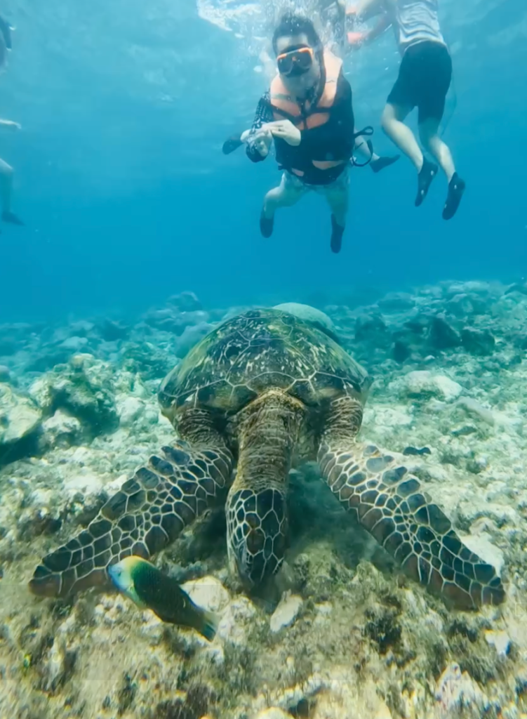 Stepping onto the island felt like entering a different world. The water was clearer than I imagined, and the sun lit up everything in that soft, perfect way. We swam near the sanctuary, and there they were—sea turtles, gently gliding beneath us like underwater dancers. We also saw schools of colorful fish, coral gardens, and a sneaky little sea snake that my daughter spotted first. It was hard not to smile the whole time. Even as someone who can’t hold his breath for long, I didn’t want to leave the water.