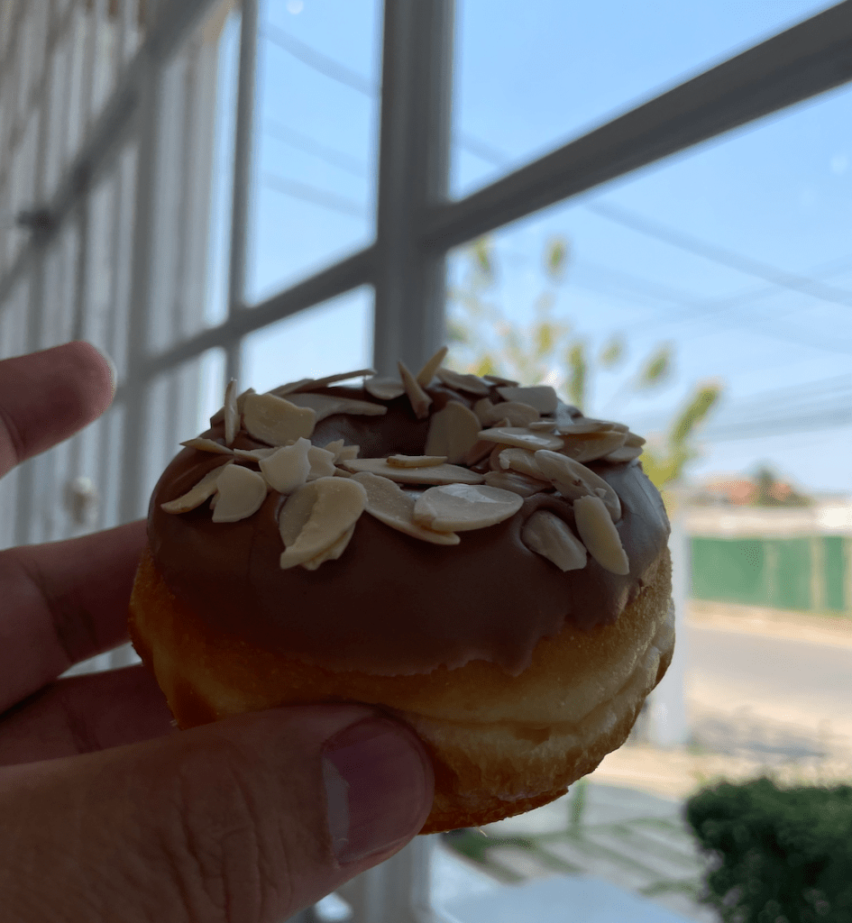 This is probably the best doughnut place in Vientiane, and it helps that it also is a very modern and stylish building with floor to roof glass walls.This was recommended to me by a friend, and she said a Lao-Ukrainian woman entrepreneur founded the place.