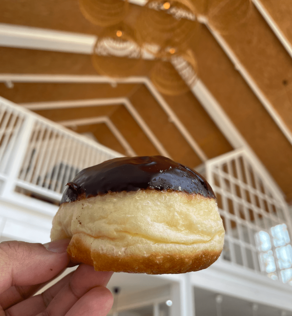 I opted for two, as if I was not already stuffed. I got an Almond Latte and a Chocolate Glazed one.