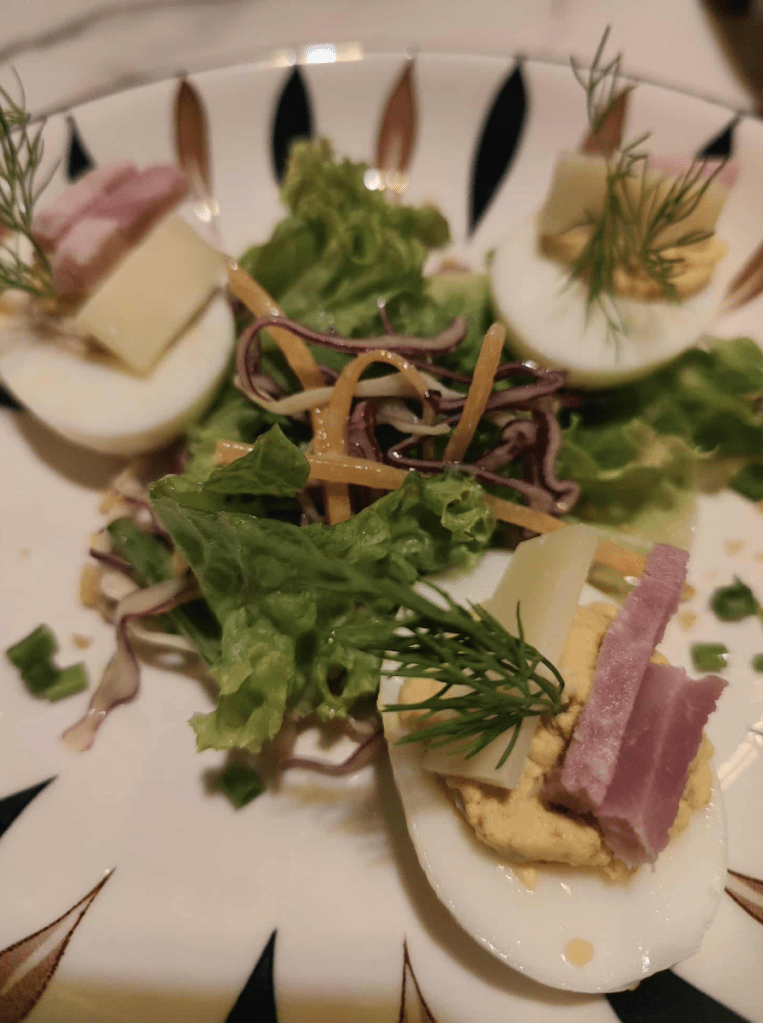I opted for a three course menu and I did not regret the choice. For starters, I had a Devilled eggs with Paris ham, Comte cheese, and gherkins. It’s a 9/10 for me. For main course, I got the Fish and Prawn Timbale and it was very delicious. A timbale is like a custard like dish and this one sets on a layer of fragrant rice and sweet curry sauce. 9/10 as well. For my dessert, I got a Chocolate and Caramel “Millionnaire” Shortbread. This one is a 5/10 for me. The topping was very sweet and the shortbread disintegrates when you cut through the chocolate. But the complimentary bread is very good that it compensates for all the gaps.