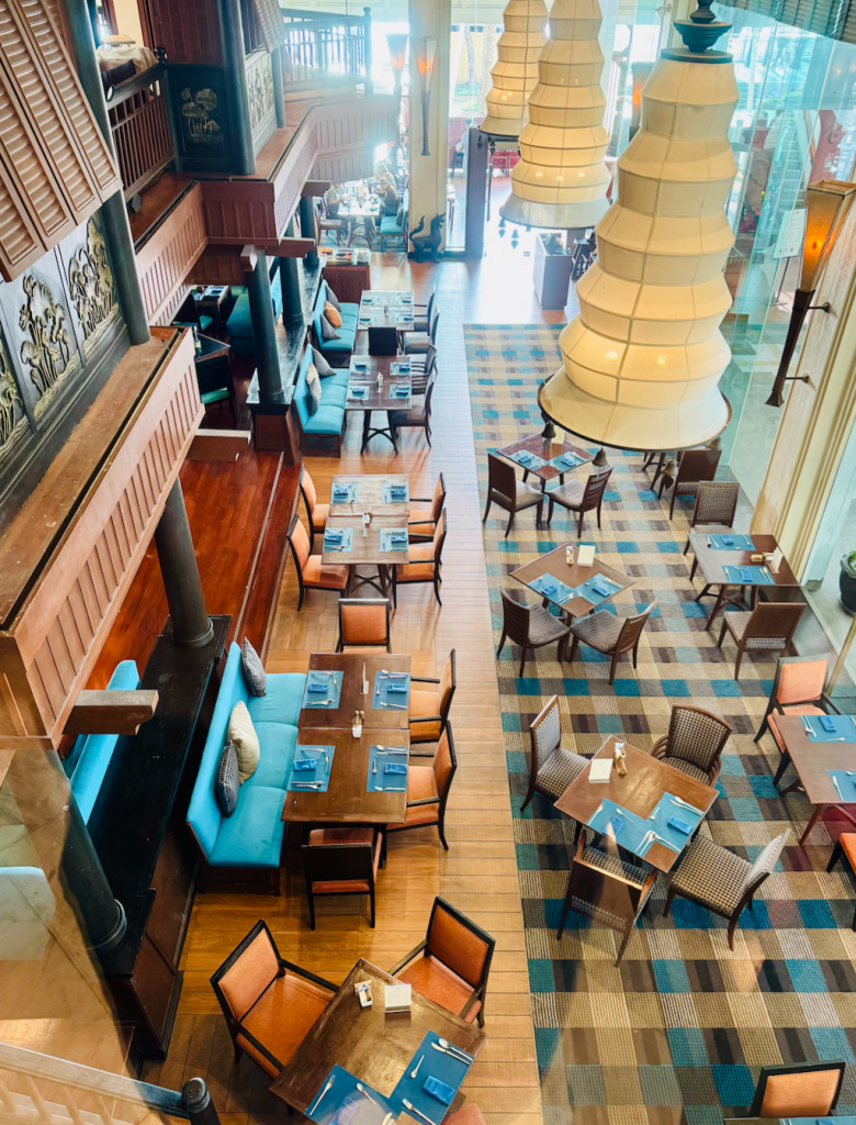 The restaurant serves good breakfast and dinner buffet – fairly international. The dining area overlooks the Chao Phraya river. It just gets very busy sometimes, that securing a spot near the river is quite challenging.