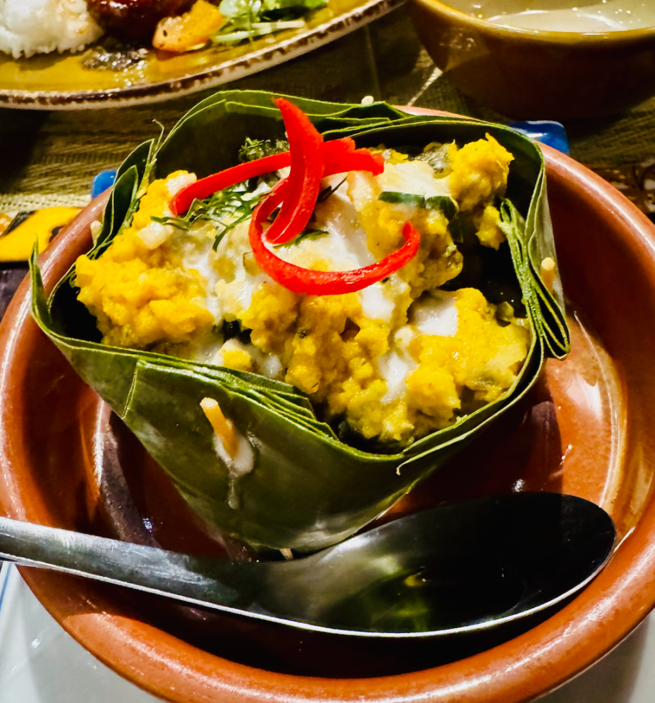 We went to LaBaab Restaurant and had our dinner. It was a good one – traditional Khmer food that looks like a favorite of locals and tourists alike. We had ant eggs omelet, along with some spring rolls and my favourite fish amok plus some grilled beef and a dish that was called “quail eggs fall on scallops” which was also good and tasty.