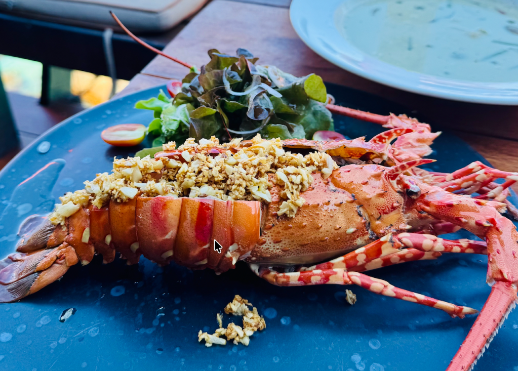 Overall, it was a good experience. I think the ambience made up for whatever lack the food had (e.g. canned coconut milk on the green curry, slightly overcooked lobster that it lost its natural suppleness). And the crew was attentive and very helpful – even to the extent of volunteering to take the picture when all our orders arrived.