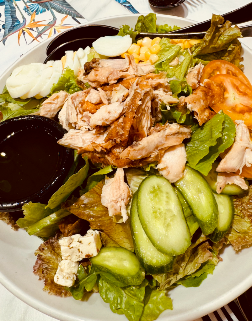 We had salad for starters – Sicilian Chicken – grilled chicken strips with peach slices, grapes, tomatoes and mixed greens in vinaigrette – refreshing, tasty, and filling. I ordered a Honey Ginger Chilli Salmon for my main course, while my friend had Chicken Carbonara. We paired it with their inventive drinks – Beetroot Madness for me, and Honey Ginger Watermelon for my friend. All 4/5.