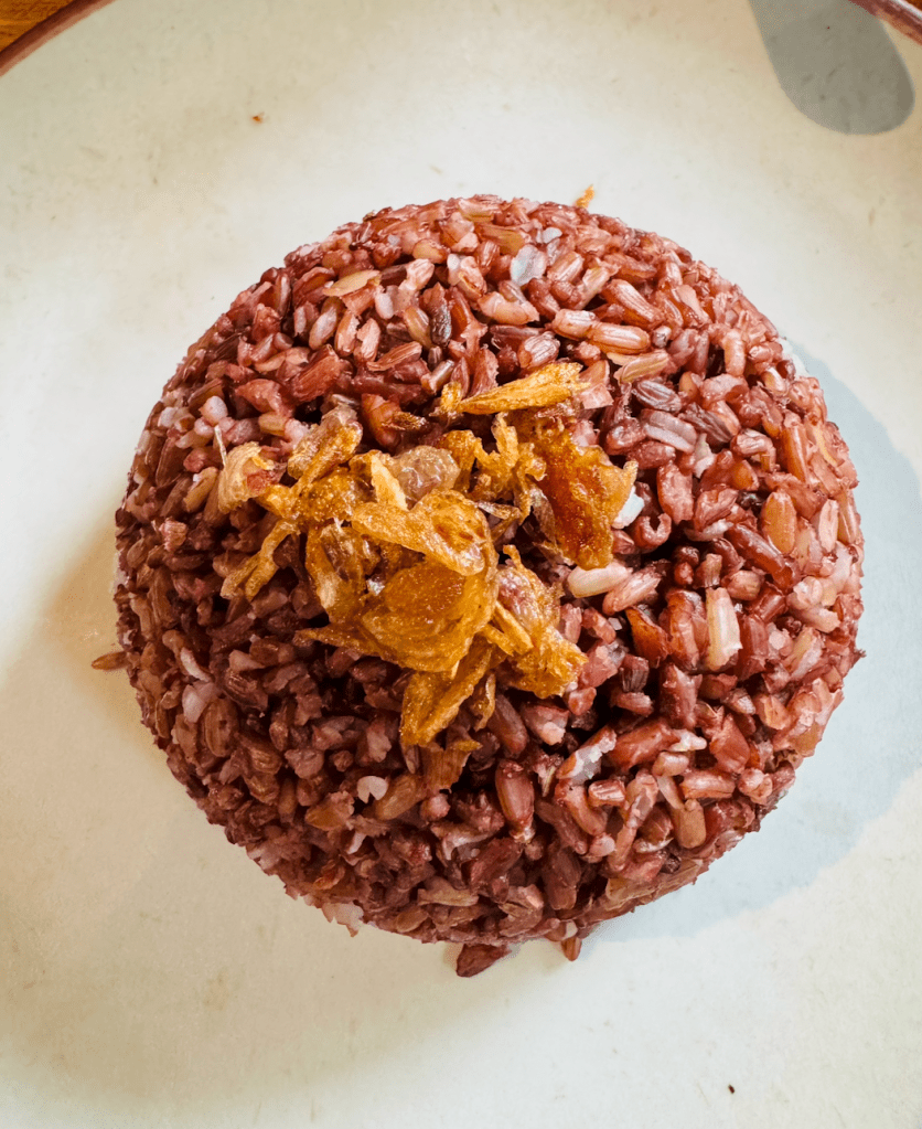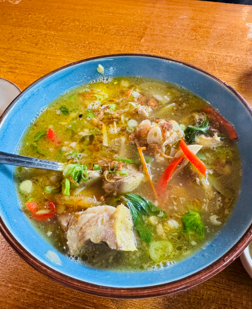 Garang Asam Iga is a traditional Central Javanese soup that highlights the tender, braised beef ribs in a tangy, spicy, and savory broth. In this case, Kaum makes the soup very delicious, with a concoction of starfruit, green tomatoes, kedondong, green chili and sweet basil leaves. It was just heaven. 10/10. I paired it with red rice steamed to perfection. For drinks, I ordered Kanyit Asam, a sweet and sour drink made from turmeric and tamarind.